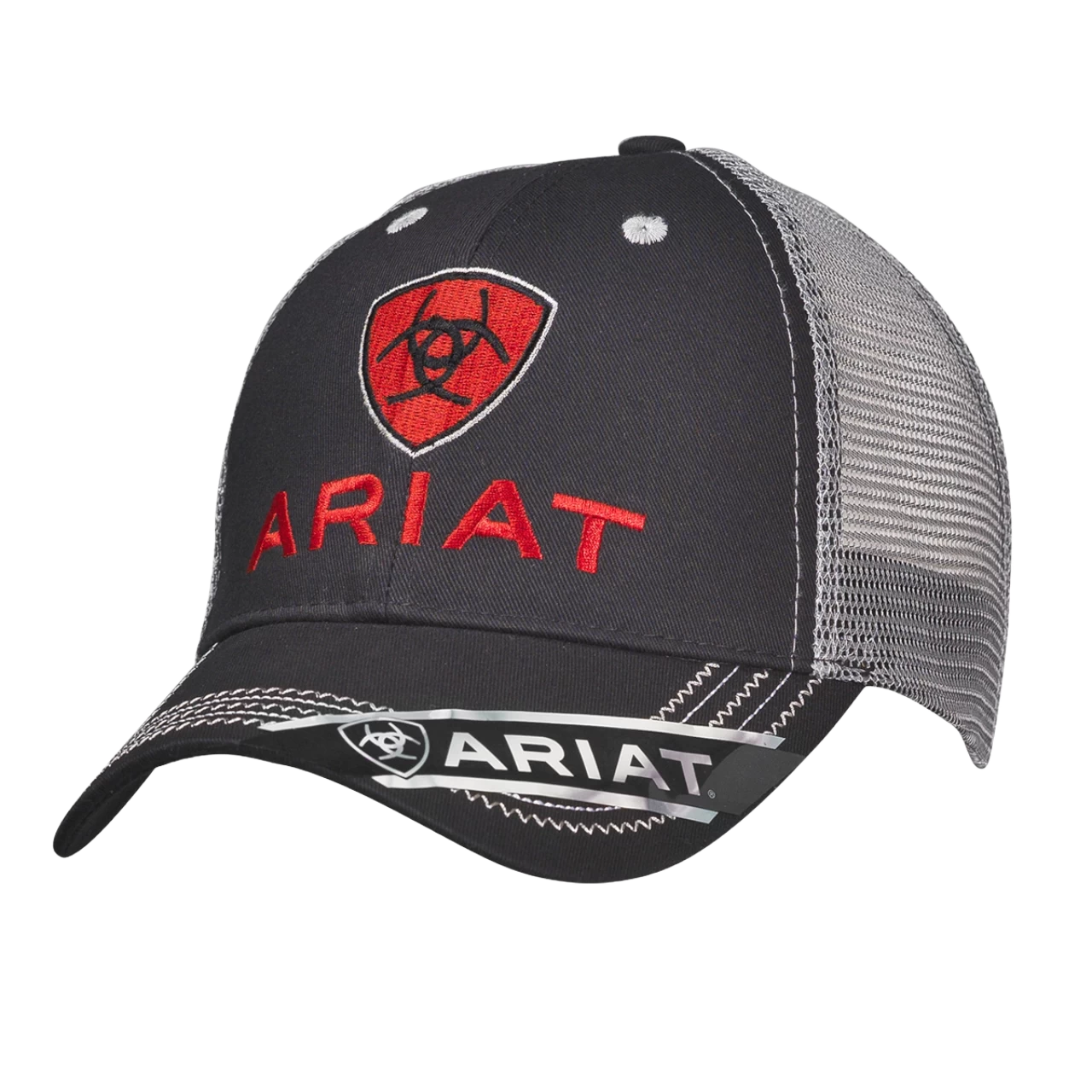- This hat from Ariat features a soft mesh back and embroidered black crown.